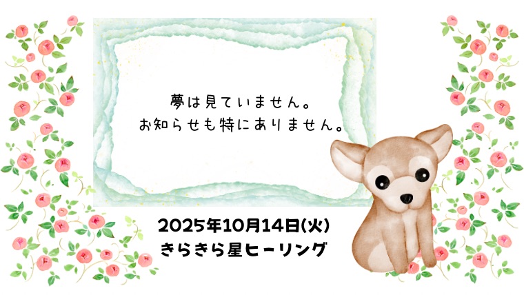 2025.12.03 今日のきらきら星ヒーリング 2025年12月3日(水)のきらきら星ヒーリング 川村 裕美 こんにちは。いつもブログにお越しくださりありがとうございます。 本日のきらきら星ヒーリングのお知らせです(^-^*)/ 2025年12月3日(水)のきらきら星ヒーリング 昨日は、祝詞、遠隔レイキ、お祓いをさせていただきました。 目を閉じても何も見えませんでしたし、夢も見ませんでした。 ひとこと 今日も簡単ですみません。本日もどうぞよろしくお願いいたします。 いつもありがとうございます。 ABOUT ME ひろみセラピスト/ブロガーX精神世界を探求・研究し続けてきて21年。退行催眠のセラピスト。また、夢を見てメッセージを受け取ったり、夢を使ってヒーリングを行うこともしている。いつの間にかどこからともなく夢でメッセージが来るようになり、そのメッセージをこのブログで発信中。